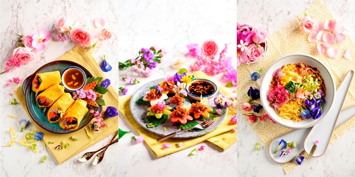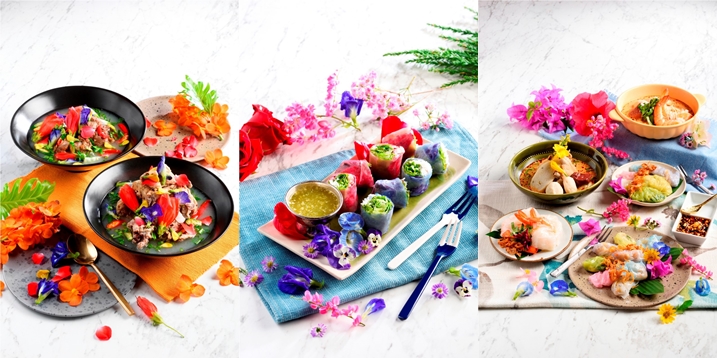 สาวกเล้งห้ามพลาด! เมนูดอกไม้จาก “ร้านเล้งเซงลี้” ที่เล้งผ่านการตุ๋นนานถึง 4 ชม.ทำให้ได้เนื้อที่เปื่อย นุ่มอร่อย โรยด้วยดอกไม้และพริกขี้หนู หน้าตาสวยงามน่ารับประทาน ส่วนเรื่องรสชาตินั้นเปรี้ยวแซ่บสะใจ ตัดกับสีสันสวยงามของดอกไม้ ต่อกันที่เมนูดอกไม้เวียดนามจาก “ร้านเวียตคอนเซ็ปต์” (Viet Concept) กับเมนู ปอเปี๊ยะกุหลาบอัญชัน แป้งปอเปี๊ยะเหนียวนุ่มเสิร์ฟคู่กัน 2 สีคือสีชมพูที่ได้มาจากน้ำกุหลาบอ่อนๆ ส่วนแป้งสีฟ้าได้จากน้ำอัญชัญ ห่อด้วยผักปลอดสารพิษคัดพิเศษ และ กุ้งสดเด้งๆ ทานคู่กับน้ำจิ้มสูตรเด็ดของร้าน อีกหนึ่งเมนูห้ามพลาดคือ เฝอหมูอัญชัน เส้นเฝอมีสีฟ้าสวยงามจากดอกอัญชัน โดยความพิเศษของเมนูนี้อยู่ที่เมื่อบีบมะนาวลงในน้ำซุปจะเปลี่ยนสีเป็นสีม่วงทันที เมนูนี้บอกเลยว่าต้องลอง! ไปต่อกันที่ “ร้านก๋วยเตี๋ยวปากหม้อหลากสี” เสิร์ฟปากหม้อสีสันสวยงาม ทานคู่กับต้มยำกุ้งน้ำข้น ที่ทางร้านใช้นมแทนกะทิ ทำให้รสชาติหอม นุ่ม