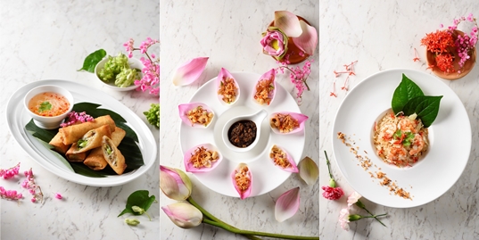 เริ่มกันที่ อีทไทย เนรมิต งาน “กรุ่นกลิ่นหอมหวาน อาหารดอกไม้” เต็มไปด้วยหลากสีสันของดอกไม้จากเอเชียสุดตื่นตา โดย “ปาร์ค นาย เลิศ” มาพร้อมกับเมนูสุดพิเศษ สูตรต้นตำรับของปาร์คนายเลิศกับเมนู ปอเปี๊ยะคุณย่าดอกขจร ปอเปี๊ยะทอดสูตรคุณย่าของคุณเล็ก ณพาภรณ์ ที่ยังคงความดั้งเดิมทั้งรสชาติและรายละเอียด ผสานเข้ากับดอกขจรที่มากด้วยคุณประโยชน์ รับประทานคู่กับน้ำจิ้มสูตรพิเศษรสกลมกล่อม เข้ากันอย่างลงตัว หรือจะอร่อยกับ ขนมจีนน้ำพริกดอกไม้ เมนูอาหารไทยโบราณของภาคกลางที่บ่งบอกถึงความอุดมสมบูรณ์ของภูมิภาค จากส่วนผสมที่มากด้วยคุณค่าทางโภชนาการและสรรพคุณทางยาหลากหลายชนิด นำมาปรุงอย่างพิถีพิถันทุกขั้นตอนตามต้นตำรับดั้งเดิมของบ้านปาร์คนายเลิศ จนได้เป็นน้ำพริกเข้มข้น รสกลมกล่อม รับประทานคู่กับเส้นขนมจีนเหนียวนุ่ม พร้อมผักเครื่องเคียงและดอกไม้นานาชนิด หรือยำส้มโอดอกเข็ม ที่มีมาแต่โบราณ เป็นเมนูเพื่อสุขภาพอุดมไปด้วยคุณประโยชน์มากมายจากทั้งส้มโอคัดพิเศษ เครื่องยำรสกลมกล่อม และกุ้งตัวโตเนื้อแน่น แต่งแต้มด้วยดอกไม้สีสันสวยงามเพิ่มความสดชื่น