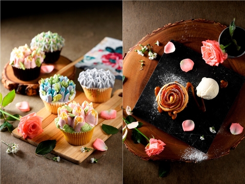 อีกหนึ่งเมนูสุดฮิต “Flower Garden Cupcakes คัพเค้กวานิลลาและช็อกโกแลต” ใครที่ชอบคัพเค้กรับรองว่าฟินสุดๆ กับคัพเค้กเนื้อนุ่มทอปด้วยบัตเตอร์ครีมวานิลลาและช็อกโกแลตกลิ่นหอม ตกแต่งหน้าเค้กเป็นดอกไม้สีสันสวยงาม ถูกรังสรรค์ออกมาได้น่ารัก น่ารับประทาน รับรองว่าคัพเค้กเลิฟเวอร์ต้องฟิน ปิดท้ายด้วย “Apple & Rose Dessert พายแอปเปิ้ลแดง" ม้วนเป็นทรงดอกกุหลาบแสนสวย ปรุงรสด้วยน้ำตาล ชินนามอน หวานน้อย นำไปอบให้มีสีเหลืองทองอร่าม รับประทานคู่กับซอสคาราเมลและไอศกรีมวานิลลา