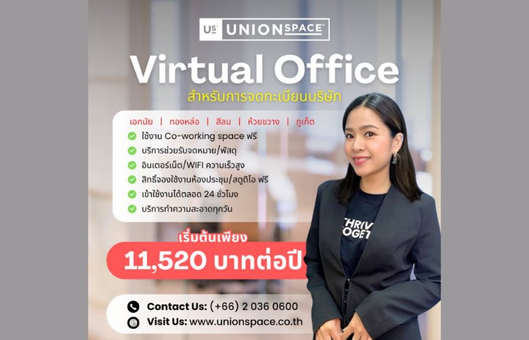 "UnionSPACE" สำนักงานเสมือน ตัวช่วยธุรกิจให้เติบโตขึ้นอย่างมีประสิทธิภาพ