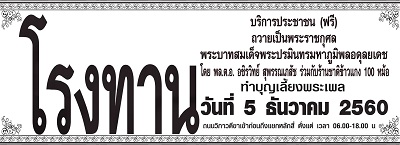 พล.ต.อ.อชิรวิทย์ สุพรรณเภสัช ร่วมกับร้านชาติข้าวแกง 100 หม้อได้เปิดโรงทานบริการประชาชนให้เข้ามารับอาหารรับประทานฟรีตลอดทั้งวัน ในงานมีตัดผมฟรีถวายเป็นพระราชกุศล พร้อมด้วยเพื่อนพ้องน้องพี่ ศิลปินนักร้อง ทศพล หิมมพานต์,เกษม คมสันต์,สายันต์ ลายไทย,ไมค์ ตีสิบ,น้ำผึ้ง บึงสามพัน,รัตนา ฟ้าอำไพ และคุณ,นายนิธิโรจน์ แก้วรักษ์กมล(คมพญาข่าว)ปธ.บริหารสำนักข่าวสมาคมตำรวจ,คุณชัยวัฒน์ นิษฐ์วัฒนา ร่วมสมทบทุนมาด้วย