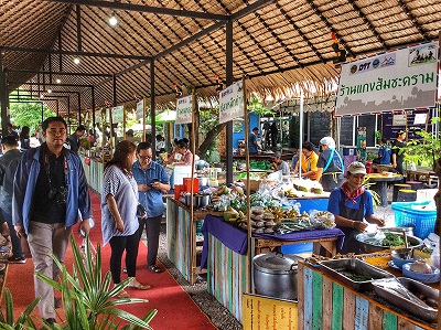 ซึ่งชาวบ้านที่นี่เค้าจะเอาของที่มีในท้องถิ่นอย่างใบชะคราม มาแปรรูปเป็นอาหารและขนม เป็นการสร้างจุดเด่นให้กับสินค้าใสนชุมชนค่ะ และใครที่อยากมาลองทานขนมและอาหารอร่อยๆที่ทำจากใบชะคราม ก็สามารถมาที่ตลาดน้ำคลองโคกขามแห่งนี้ได้เลย