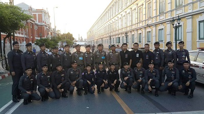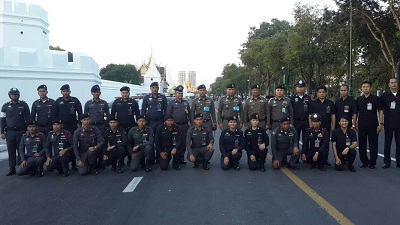 31 ธ.ค.60 พล.ต.อ.เฉลิมเกียรติ ศรีวรขาน รอง ผบ.ตร. พร้อมด้วยพล.ต.ต.ดร.เสนิต สำราญสำรวจกิจ ผบก.น.1, พ.ต.อ.มนต์ชัย ศรีประเสริฐ รอง ผบก.น.1, พ.ต.อ.ญาณพงศ์ โสมาภา รอง ผบก.น.9 ออกตรวจรอบพระเมรุมาศและจุดดัดกรองรอบท้องสนามหลวง และให้กำลังใจแก่ข้าราชการที่ปฎิบัติหน้าที่พร้อมกำชับเรื่องทรงผมให้ถูกระเบียบเรียบร้อย