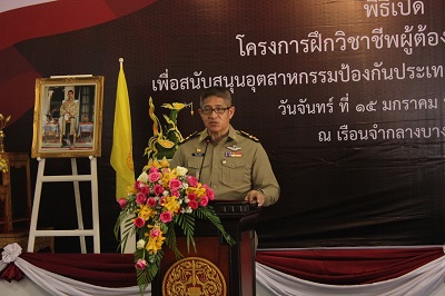 15 ม.ค.61 เวลา 11.00 น. ที่เรือนจำกลางบางขวาง พ.ต.อ.ดร.ณรัชต์ เศวตนันทน์ อธิบดีกรมราชทัณฑ์ และพล.ท.อาวุธ เอมวงศ์ เจ้ากรมสรรพาวุธทหารบก เป็นประธานพิธีเปิดโครงการฝึกอบรมผู้ต้องขังในมิติใหม่ เพื่อสนับสนุนอุตสาหกรรมป้องกันประเทศ ภายใต้ชื่อ “ไทยประดิษฐ์” พร้อมด้วยพล.ต.เอนก กล่อมจิตร รองเจ้ากรมสรรพาวุธทหารบก และคณะฯ, พล.ต.ต.สุศักดิ์ ปรักกมะกุล ผบก.ภ.จว.นนทบุรี, นายโสภณ ยิ้มปรีชา ผู้บัญชาการเรือนจำกลางบางขวาง, เจ้าหน้าที่กระทรวงยุติธรรม และหน่วยงานที่เกี่ยวข้อง ณ เรือนจำกลางบางขวาง ต.สวนใหญ่ อ.เมือง จ.นนทบุรี