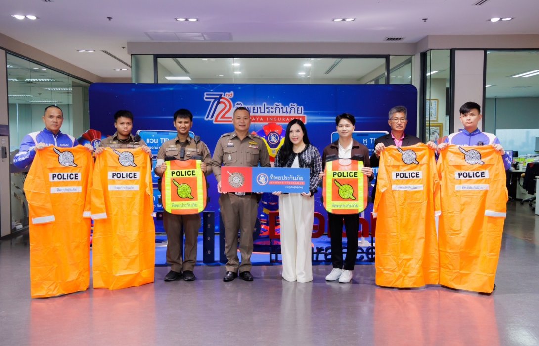 "ทิพยประกันภัย" มอบเสื้อกันฝนและเสื้อกั๊กสะท้อนแสง ให้กับตำรวจสถานีตำรวจภูธรบางแก้ว