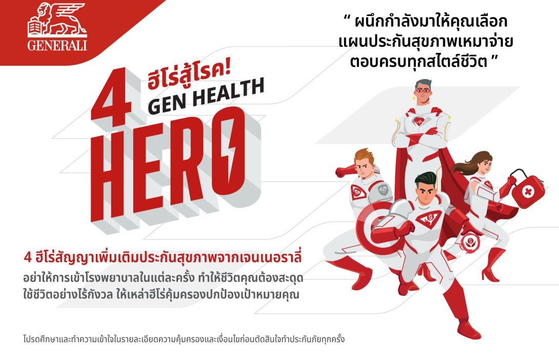 "เจนเนอราลี่ ประกันชีวิต" เปิดตัว 4 ฮีโร่ใหม่ ลุยตลาดประกันสุขภาพโค้งสุดท้ายแห่งปี เพิ่มผลประโยชน์ 2 เท่า คุ้มครองสูงสุด 100 ล้านบาท