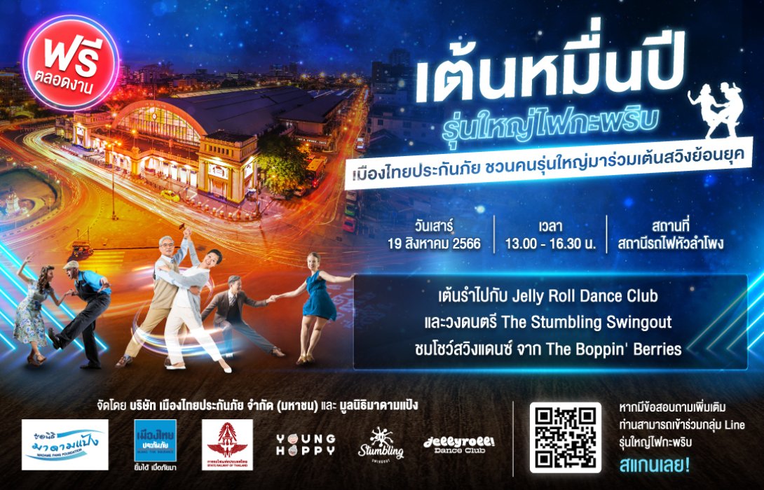 "เมืองไทยประกันภัย" ชวนชาวรุ่นใหญ่ผู้มีเสียงดนตรีในหัวใจ มาร่วมเต้นออกสเต็ปแดนซ์ครั้งใหญ่ “งานเต้นหมื่นปี รุ่นใหญ่ไฟกะพริบ”