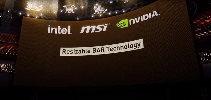 โดย MSI เป็นหนึ่งในไม่กี่แบรนด์ที่นำเทคโนโลยี Resizable Bar มาใช้เป็นแบรนด์แรกๆ โดยเทคโนโลยีนี้ จะถูกติดตั้งไว้ในเกมมิ่งโน้ตบุ๊กที่มาพร้อมกราฟิกการ์ดตัวล่าสุดของ NVIDIA GeForce RTX 30 ซีรี่ส์ ซึ่งมีการร่วมมือกับทาง Intel เพื่อปรับความเร็วในการส่งข้อมูลให้มีประสิทธิภาพสูงขึ้น รวมถึงปรับปรุง FPS ภายในเกมให้มีเฟรมเรตดีขึ้น 5%-10% เห็นผลได้ชัดสำหรับในส่วนของการแสดงผลที่สามารถแสดงรายละเอียดได้คมชัดมากขึ้น ให้ผู้เล่นได้เข้าถึงอรรถรสของการเล่นเกมและอิ่มเอมไปกับประสบการณ์ใหม่ในแบบที่ไม่เคยได้สัมผัสจากที่ไหนมาก่อน