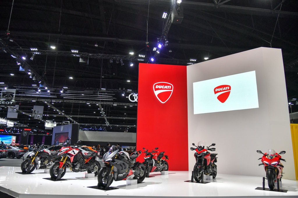 ในงาน BANGKOK INTERNATIONAL MOTOR SHOW 2022 ดูคาติ ประเทศไทย จัดแสดงรถจักรยานยนต์รุ่นใหม่ทั้ง 6 รุ่น และรุ่นยอดนิยมอีกกว่า 11 รุ่น ในพื้นที่เดียวกันกับบูธยนตรกรรม Audi ภายใต้คอนเซปต์ Audi-Ducati Brand Integration ซึ่งลูกค้าที่มาเยี่ยมชมจะได้แรงบันดาลใจใหม่ๆ และได้สัมผัสกับสุดยอดเทคโนโลยียนตรกรรรมและความพรีเมียมของทั้งสองแบรนด์