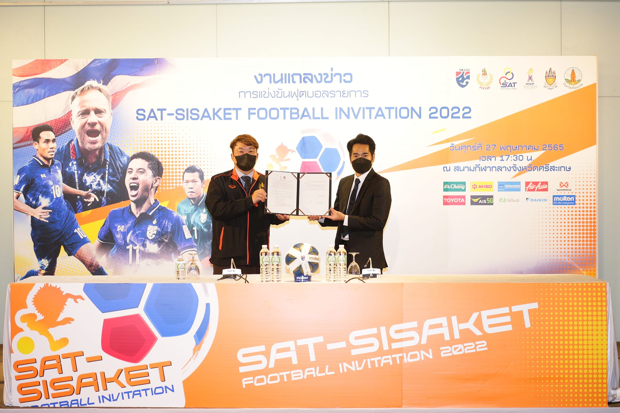 การกีฬาแห่งประเทศไทย ร่วมกับ กองทุนพัฒนาการกีฬาแห่งชาติ , สมาคมกีฬาฟุตบอลแห่งประเทศไทย และ สมาคมกีฬาจังหวัดศรีสะเกษ จัดการแข่งขัน “SAT SISAKET FOOTBALL INVITATION 2022” ระเบิดศึกฟุตบอลอุ่นเครื่อง ระดับ A-MATCH เก็บคะแนนสะสมอันดับฟีฟ่าแรงกิ้ง เป็นการพบกันระหว่าง “ช้างศึก” ฟุตบอลทีมชาติไทย ชุดใหญ่ ทีมอันดับ 111 ของโลก พบกับ ทีมชาติเติร์กเมนิสถาน ทีมอันดับ 134 ของโลก โดยจะจัด ณ จังหวัดศรีสะเกษ เป็นครั้งแรกในประวัติศาสตร์วงการฟุตบอลไทย ซึ่งจะมีขึ้นในวันศุกร์ที่ 27 พฤษภาคม นี้ ที่สนามกีฬากลางจังหวัดศรีสะเกษ