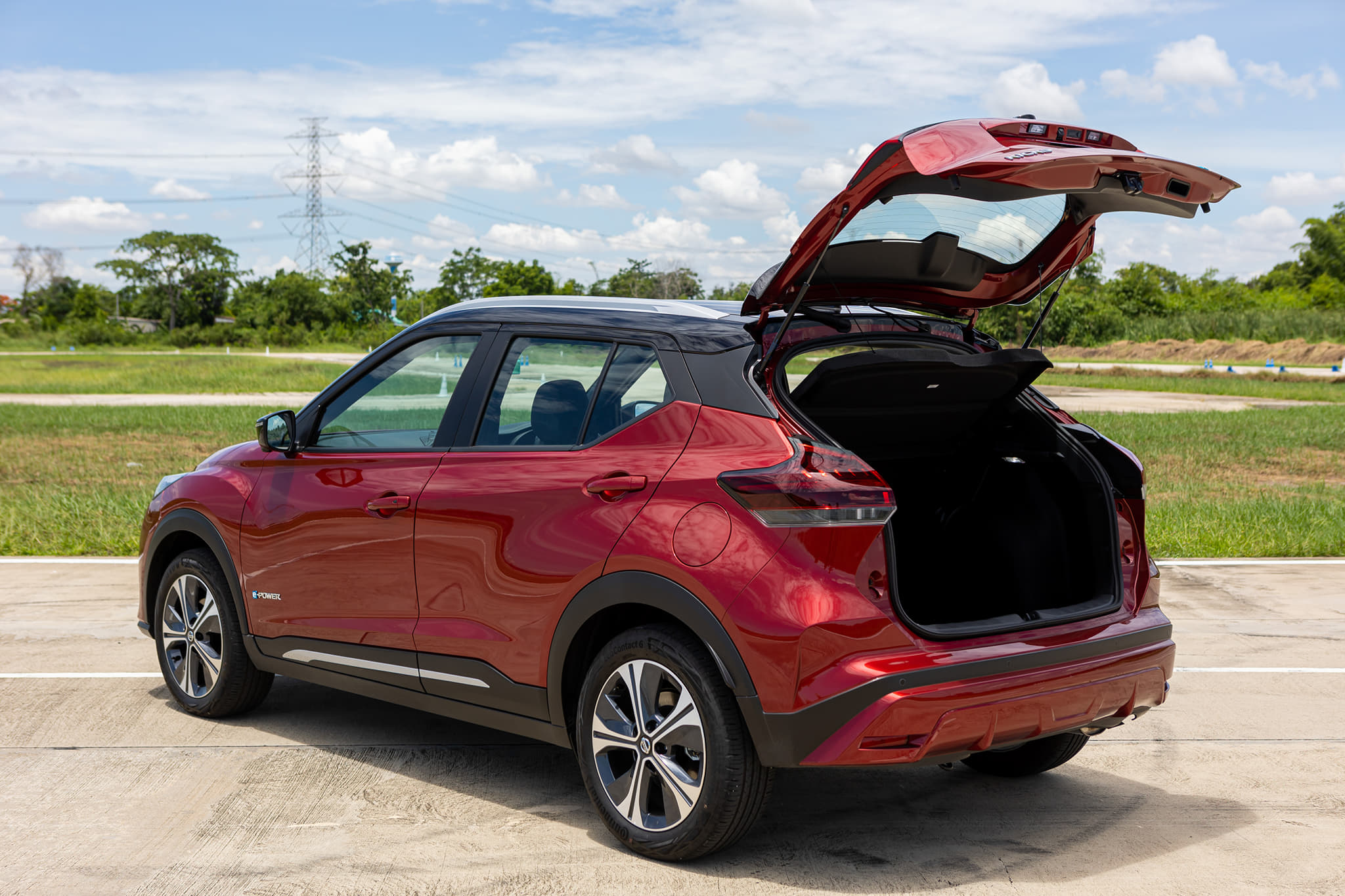 และด้วยความเข้าใจในไลฟ์สไตล์คนรุ่นใหม่ที่รักการเดินทาง นิสสัน คิกส์ อี-พาวเวอร์ ใหม่ มีที่วางแก้วเครื่องดื่มที่ออกแบบมาใหม่สามารถรองรับแก้วเครื่องดื่มทุกขนาดทุกรูปแบบที่มีอยู่ในตลาด หยิบจับได้ง่าย ไม่หกเลอะเทอะ และที่เก็บสัมภาระด้านหลังรถกว้างขวางมากขึ้น จุดสัมภาระได้ถึง 423 ลิตร หรือสามารถบรรทุกกระเป๋าเดินทางใหญ่ 30 นิ้ว 2 ใบได้สบายๆ รวมถึงสามารถปรับเปลี่ยนการวางสัมภาระได้หลายรูปแบบ ที่นั่งตอนหลังสามารถพับแยกแบบ 60:40 และ พับราบ เหมาะกับทุกไลฟ์สไตล์ของคนรุ่นใหม่อย่างลงตัว