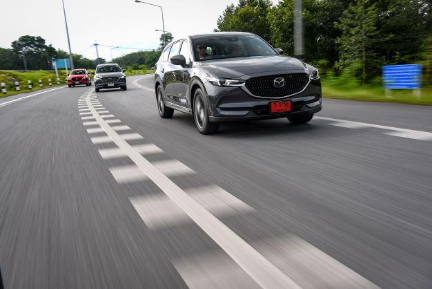 ในการทดสอบในช่วงทางเรียบ ใช้ความเร็วได้อย่างเต็มที่ พวงมาลัย แม่นยำ อยากขับสนุกยิ่งขึ้น สามารถใช้โหมด สปอร์ต ได้อีกต่างหาก ช่วงล่างแนนหนึบ ที่สำคัญในทุกรุ่นย่อยยังมาพร้อมระบบควบคุมสมรรถนะการขับขี่อัจฉริยะขั้นสูง GVC Plus ซึ่งเป็นหนึ่งในเทคโนโลยีภายใต้ SKYACTIV-Vehicle Dynamics ช่วยควบคุมสมรรถนะในการขับขี่ให้แม่นยำและสมดุล โดยเฉพาะในทางโค้งและในสถานการณ์ฉุกเฉินได้ดียิ่งขึ้น ทำให้มั่นใจอย่างยิ่ง