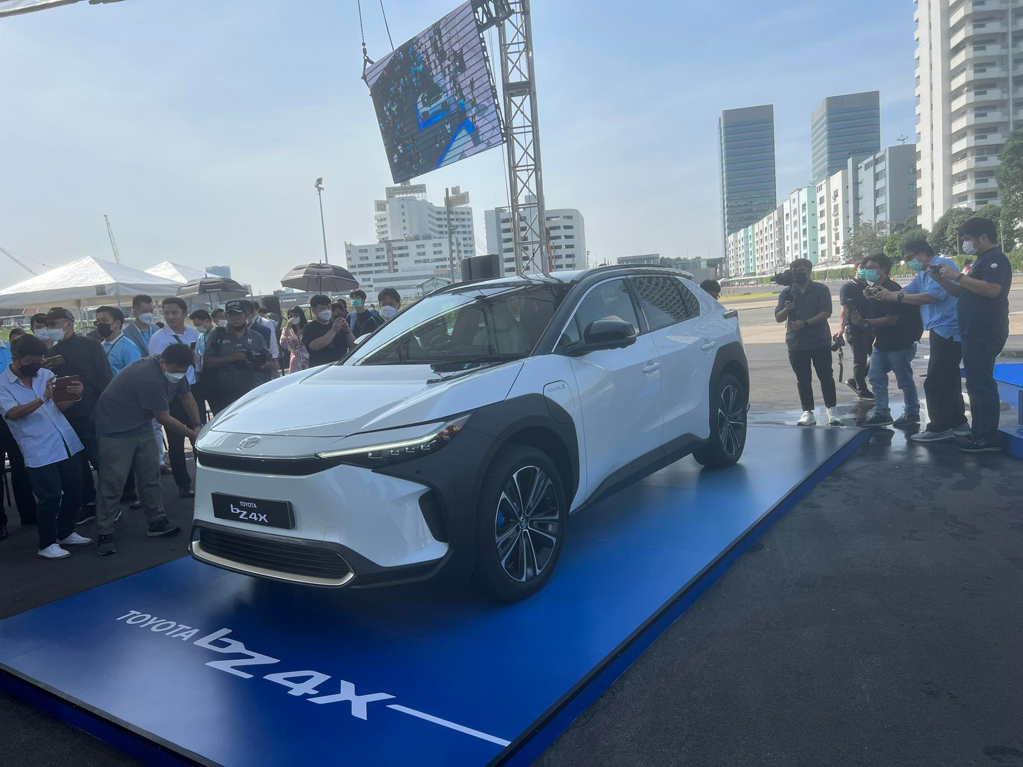 “วันนี้ เรามีความยินดีที่จะแนะนำ TOYOTA bZ4X รถยนต์พลังงานแบตเตอรี่ไฟฟ้า BEV รุ่นแรกที่จำหน่ายภายใต้แบรนด์โตโยต้า รถรุ่นนี้จะเข้าร่วมนโยบายส่งเสริมโครงการผลิตรถยนต์ไฟฟ้า ซึ่งเป็นนโยบายของทางภาครัฐ เพื่อส่งเสริมการใช้รถยนต์ไฟฟ้าอย่างแพร่หลาย”