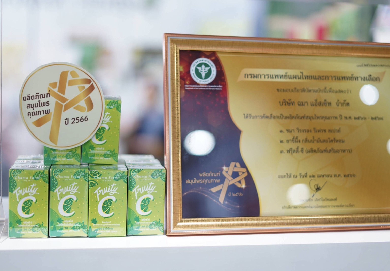 ซึ่งในปี 2566 มีผลิตภัณฑ์ที่ได้รับรางวัล ได้แก่ น้ำมันมะรุมออร์แกนิค ตรา  Chama farm, ฟรุ๊ตตี้-ซี เม็ดเคี้ยวจากพืชสมุนไพรออร์แกนิค ตรา Chama farm, ยาขี้ผึ้งกลิ่นน้ำมันตะไคร้หอมตรา Chama Herbs และยาพิมเสนน้ำกลิ่นตะไคร้หอมตรา Chama Herbs โดยจากรางวัลที่ได้รับดังกล่าว สามารถเป็นเครื่องยืนยันได้ว่า ผลิตภัณฑ์ Chama Farm และ Chama Herbs นับเป็นอีกทางเลือกหนึ่งที่น่าสนใจอย่างมาก สำหรับคนที่กำลังมองหาสิ่งที่ดีเพื่อสุขภาพ ทั้งเพื่อ ชะลอ บรรเทา และรักษาความเจ็บป่วยที่เกิดขึ้น หรือเพื่อเสริมความแข็งแรง และยืดความสมบูรณ์ของร่างกาย โดยใช้อาหารจากธรรมชาติเป็นเครื่องบำรุง นำมาซึ่งสุขภาพและคุณภาพชีวิตที่ดีอย่างยั่งยืนต่อไป”