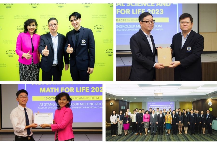 ภาควิชาคณิตศาสตร์ คณะวิทยาศาสตร์ มหาวิทยาลัยมหิดล จัดงาน Mahidol Day of Actuarial Science and Math for Life เพื่อเสริมสร้างความสัมพันธ์อันดีระหว่างบุคลากร ผู้เชี่ยวชาญ นักศึกษาปัจจุบันและศิษย์เก่าในวงการประกันภัยและภาคธุรกิจอื่นๆ รวมถึงแสดงความขอบคุณ Mr. Kean Hin Lim President of Thai Life Insurance and founder of Green Lane Scholarship ผู้ให้การสนับสนุนทุนการศึกษาฯ เมื่อวันที่ 10 ตุลาคม 2566 ณ ห้องประชุมอาคารสตางค์ มงคลสุข คณะวิทยาศาสตร์ มหาวิทยาลัยมหิดล (วิทยาเขตพญาไท) ที่ผ่านมา