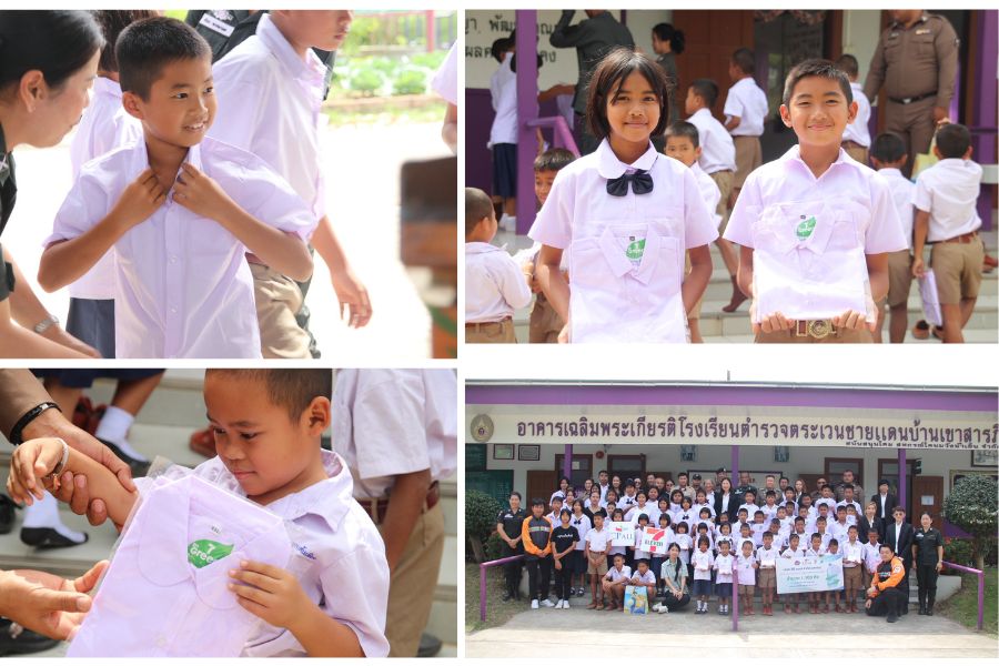 โดยมี นางสาวสุปราณี สีนวลน้อย ผู้จัดการทั่วไป บริษัท ซีพี ออลล์ จำกัด (มหาชน) ผู้บริหารร้านเซเว่น อีเลฟเว่น และเซเว่น เดลิเวอรี่ พร้อมด้วยผู้บริหาร ร่วมกันส่งมอบ เสื้อนักเรียนจำนวน 1,100 ตัว โดยมี พล.ต.ต.ถาวร ดุลยวิทย์ ผู้บังคับการตำรวจภูธรจังหวัดสระแก้ว เป็นผู้แทนรับมอบ ณ โรงเรียนตำรวจตระเวนชายแดนบ้านเขาสารภี จ.สระแก้ว