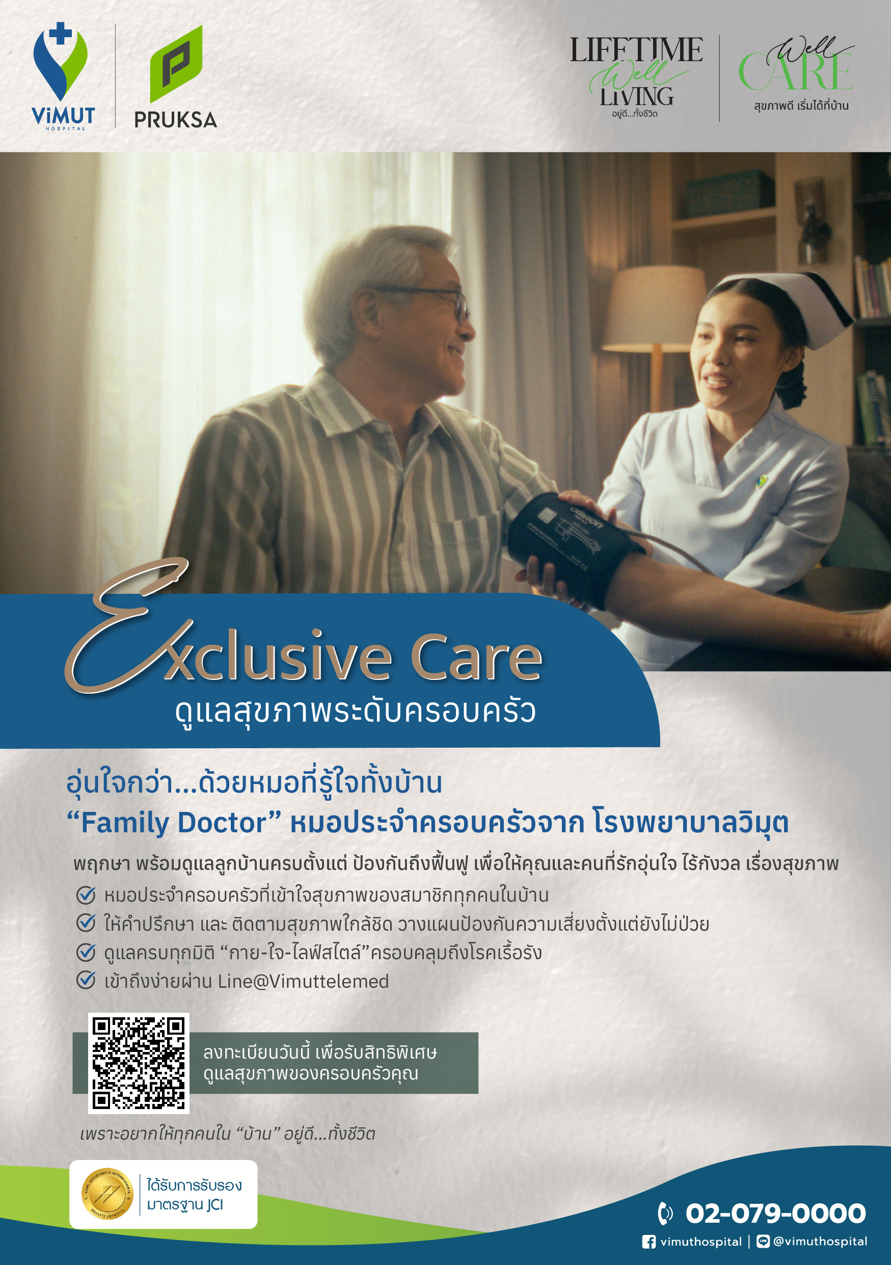 ทั้งนี้ เพื่อส่งมอบความห่วงใยถึงลูกบ้านพฤกษาให้สุขภาพกายและใจแข็งแรง และมีความเป็นอยู่ที่ดีไปทั้งชีวิต พฤกษายังคงเดินหน้าโครงการ Well Care @ Home ร่วมกับโรงพยาบาลวิมุต และโรงพยาบาลวิมุต-เทพาธารินทร์ ซึ่งเป็นโรงพยาบาลในเครือของพฤกษา บริการการตรวจสุขภาพเชิงป้องกันถึงในโครงการ รวมมากกว่า 70 โครงการ และกว่า 27,700 ครอบครัว ครอบคลุมการคัดกรองโรคไม่ติดต่อเรื้อรัง การตรวจน้ำตาลปลายนิ้ว วัดความดัน และวิเคราะห์องค์ประกอบร่างกายด้วยเครื่อง InBody พร้อมคำปรึกษาโภชนาการจากนักกำหนดอาหาร เพื่อลดช่องว่างด้านการเข้าถึงบริการสุขภาพสำหรับครอบครัวคนเมือง ตอกย้ำความตั้งใจของพฤกษาที่มุ่งยกระดับคุณภาพชีวิตแบบองค์รวม ทั้งบ้านที่ดีสู่การดูแลสุขภาพที่ดีอย่างยั่งยืน