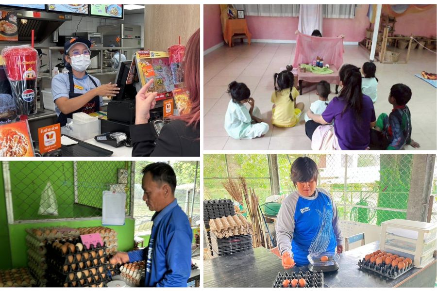 ปัจจุบัน ซีพีเอฟและบริษัทในกลุ่มจัดจ้างคนพิการรวม 728 คน ครอบคลุมการจ้างงาน 3 รูปแบบ ได้แก่ การจ้างงานคนพิการทำงานในสถานประกอบการของซีพีเอฟ 186 คน ซึ่งมีการจัดสภาพแวดล้อมและระบบสนับสนุนให้เหมาะสมกับศักยภาพของแต่ละคน และการจ้างงานคนพิการในชุมชนรวม 525 คน ส่วนใหญ่ทำงานในโรงเรียน เป็นผู้ช่วยครูในโครงการเลี้ยงไก่ไข่เพื่ออาหารกลางวันนักเรียน เป็นผู้ช่วยโรงพยาบาลส่งเสริมสุขภาพตำบล วัด และหน่วยงานราชการในพื้นที่ ช่วยแบ่งเบาภาระงาน สนับสนุนการให้บริการประชาชน และทำให้คนพิการได้ใช้ทักษะของตนเองอย่างเต็มที่ควบคู่ไปกับการเป็นส่วนหนึ่งของชุมชน รวมทั้งสนับสนุนนักกีฬาวีลแชร์บาสเกตบอลทีมชาติไทย 17 คน เพื่อให้นักกีฬามีความมั่นคงในชีวิต และมีเวลาทุ่มเทฝึกซ้อมเพื่อคว้าเหรียญทองได้อย่างเต็มที่