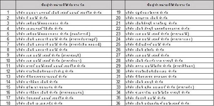 รางวัล Best Sales Performance มอบให้แก่ผู้จำหน่ายที่มียอดขายปลีกสูงสุด ในกลุ่มจังหวัดกรุงเทพฯ และปริมณฑล จำนวน 3 รางวัล